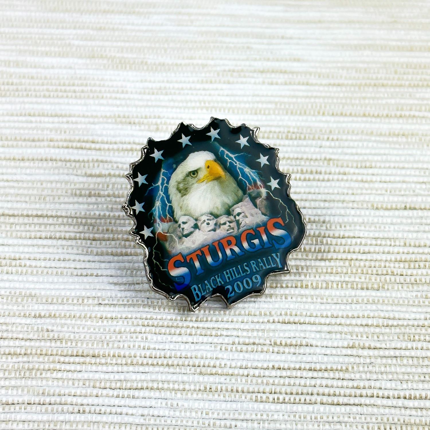 #8654 - 69TH ANNUAL 2009 STURGIS, SOUTH DAKOTA BLACK HILLS MOTORCYCLE RALLY. BIKER JACKET VEST LAPEL PIN - COLLECTIBLE STURGIS SOUVENIR - EAGLE & MOUNT RUSHMORE