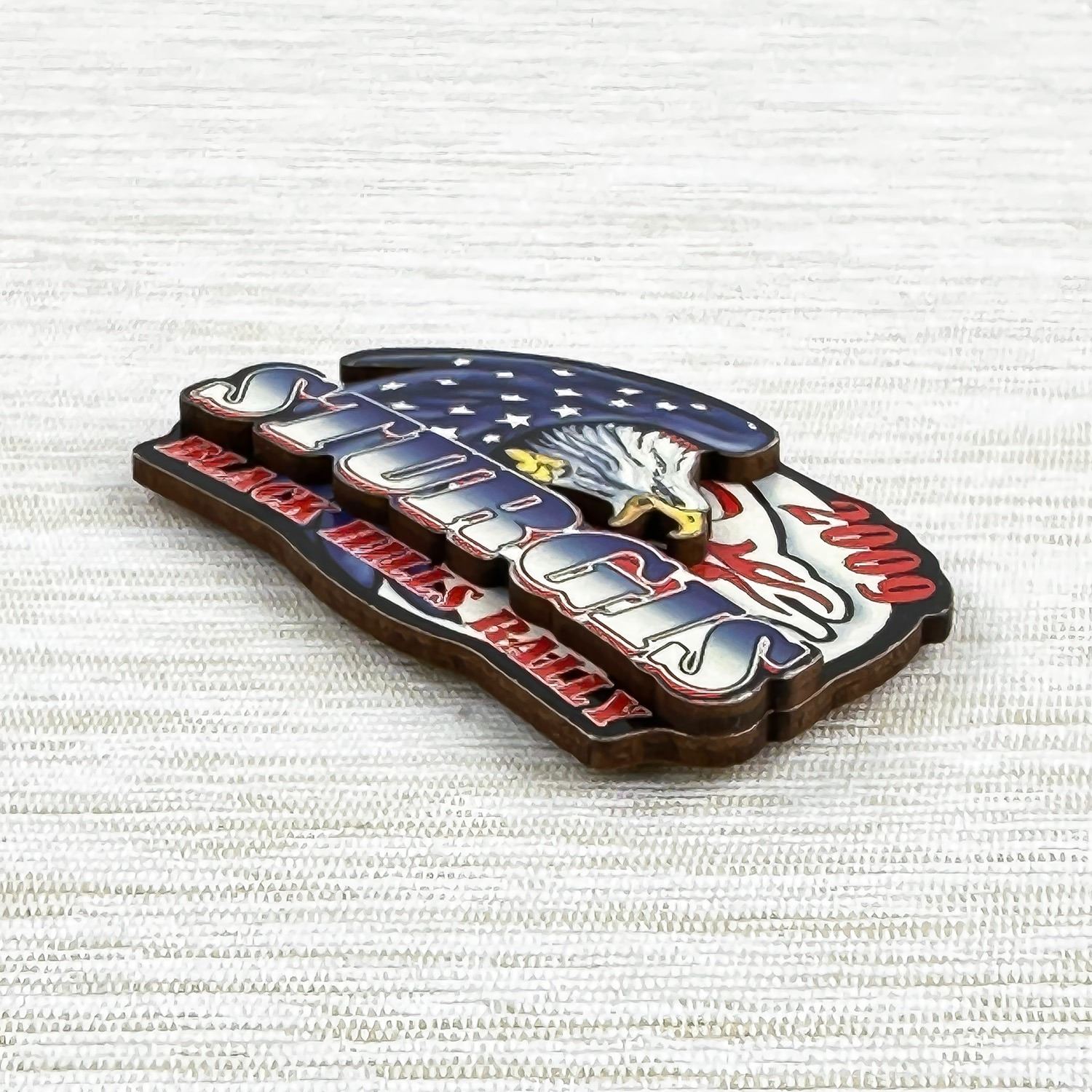 #8677 - 69TH ANNUAL 2009 STURGIS, SOUTH DAKOTA BLACK HILLS MOTORCYCLE RALLY - 3” X 2” 3D WOODEN FRIDGE MAGNET - COLLECTIBLE STURGIS SOUVENIR - EAGLE