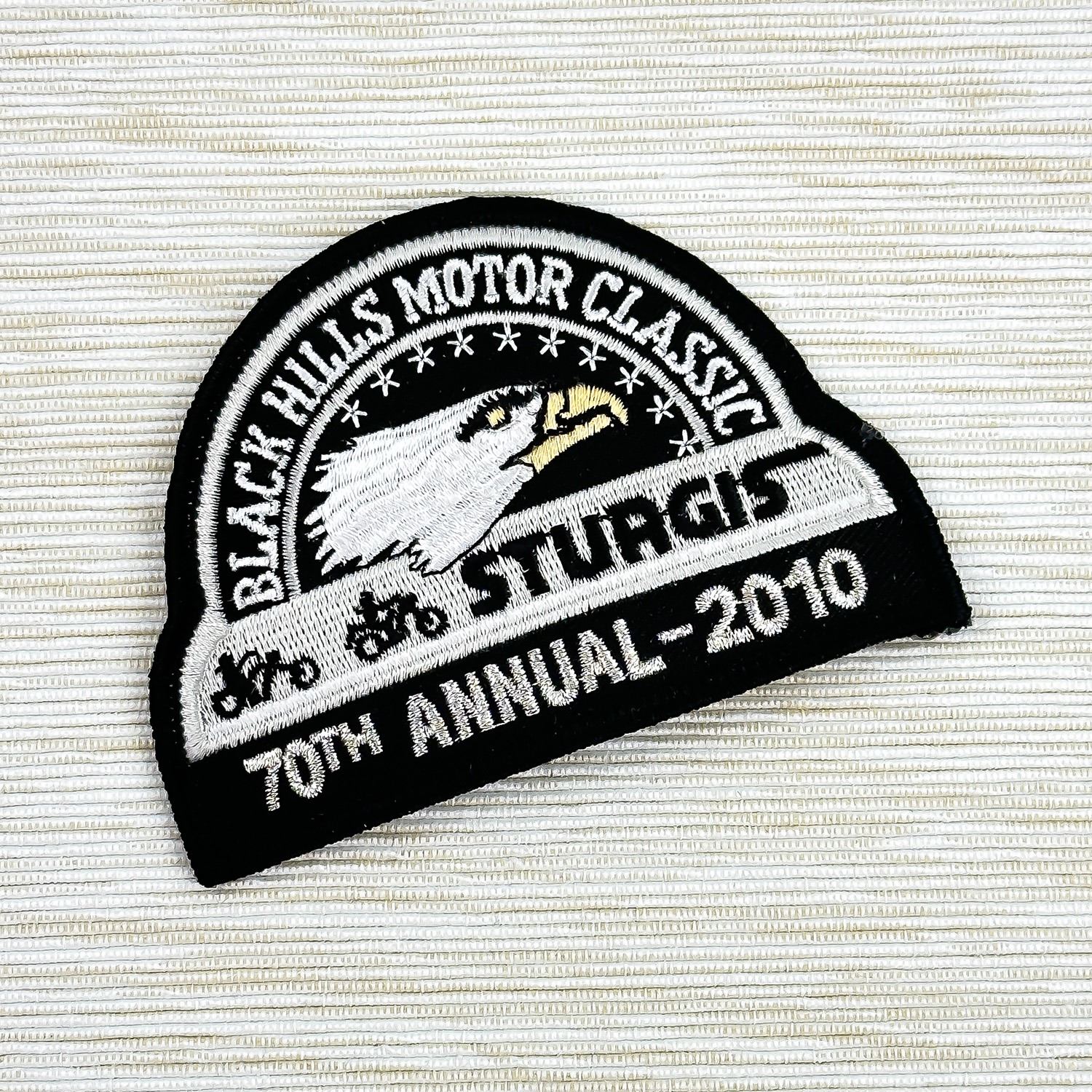 #8570 - 70TH ANNUAL STURGIS, SOUTH DAKOTA BLACK HILLS MOTORCYCLE RALLY OFFICIAL ROUND PATCH. COLLECTIBLE JACKET VEST PATCH - SOUVENIR EMBLEM - EAGLE