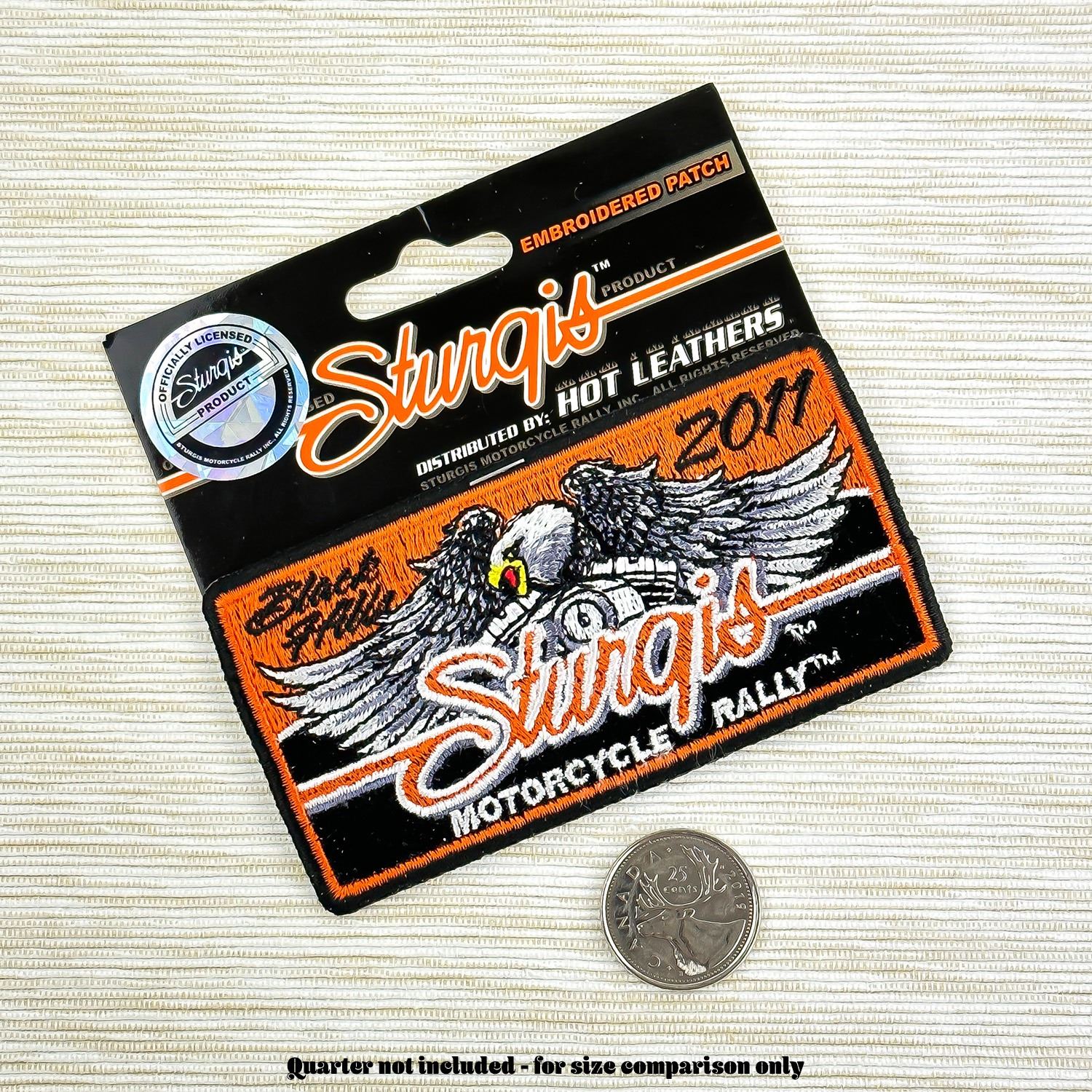 #8576 - HOT LEATHERS - 71ST ANNUAL STURGIS, SOUTH DAKOTA BLACK HILLS MOTORCYCLE RALLY OFFICIAL ROUND PATCH. COLLECTIBLE JACKET VEST PATCH - SOUVENIR EMBLEM - 4” EAGLE SCRIPT PATCH