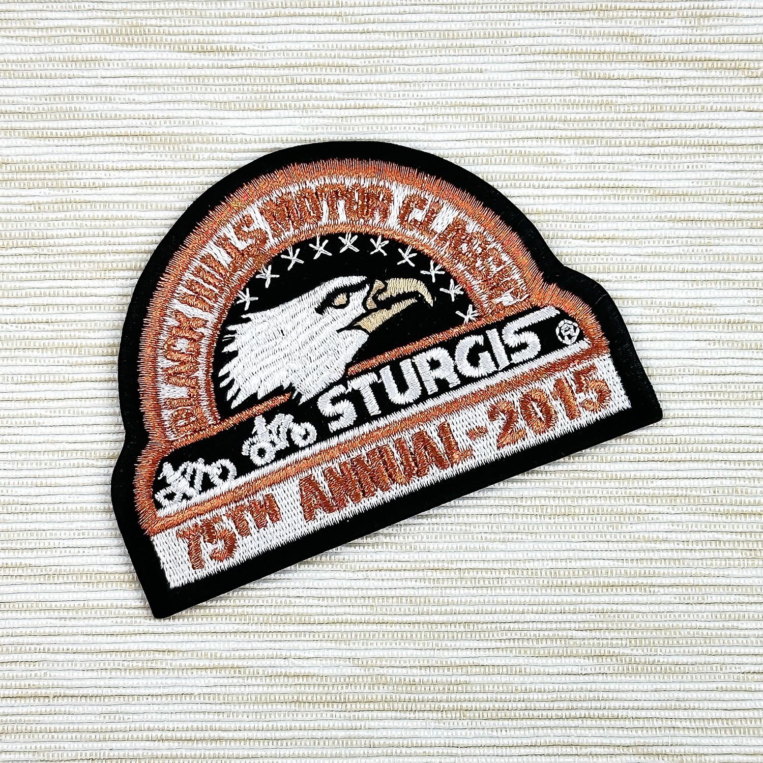 #8584 - 75TH ANNUAL STURGIS, SOUTH DAKOTA BLACK HILLS MOTORCYCLE RALLY OFFICIAL ROUND PATCH. COLLECTIBLE JACKET VEST PATCH - SOUVENIR EMBLEM - EAGLE
