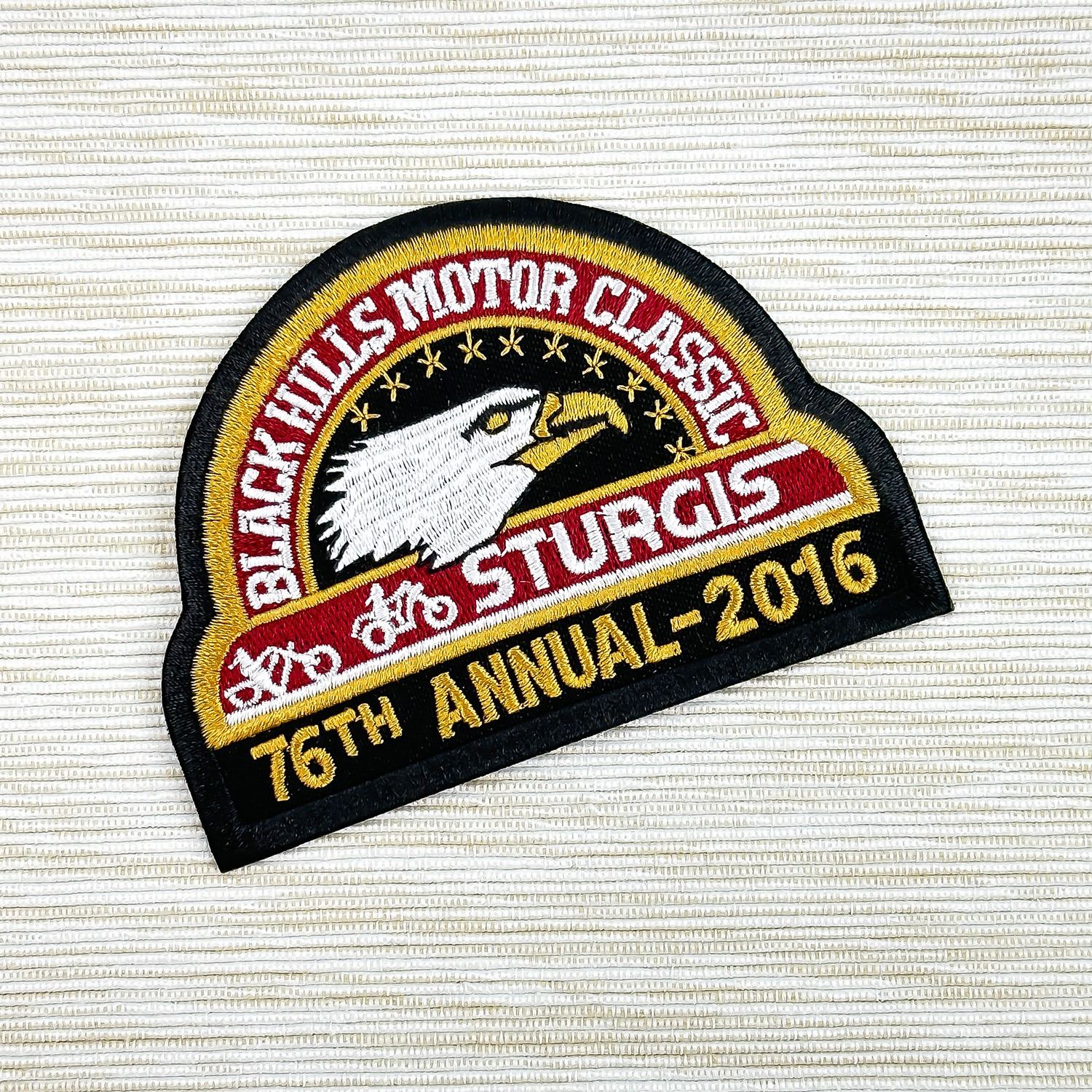 #8575 - 76TH ANNUAL STURGIS, SOUTH DAKOTA BLACK HILLS MOTORCYCLE RALLY OFFICIAL ROUND PATCH. COLLECTIBLE JACKET VEST PATCH - SOUVENIR EMBLEM - EAGLE