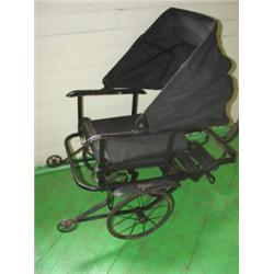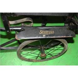 STURGIS VICTORIAN BABY STROLLER with wooden handle & canopy. Canopy and seat have been refurbished.