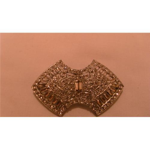 art deco bow like brooch set whit round & baguette-cut clear crystal rhinestones
