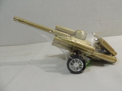 STYLIZED MILITARY ART, CANNON MADE OF GUN SHELL CASINGS. 8"L. AS SHOWN. VIEW PICTURE FOR DETAIL.