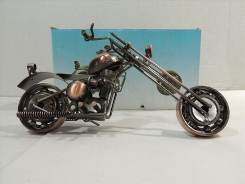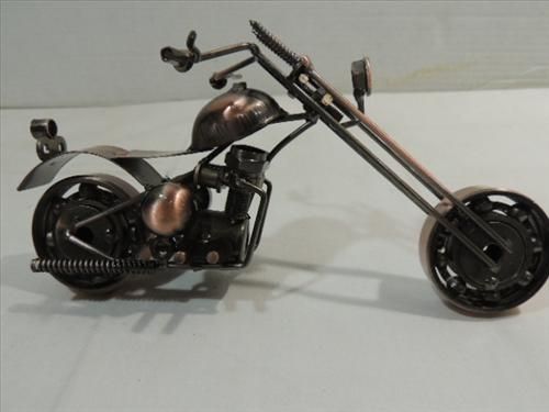 STYLIZED MOTORCYCLE CHOPPER: MADE OF BOLTS, SCREWS BALL BEARING WHEELS. 9"L. AS SHOWN. VIEW PICTURE FOR DETAIL.