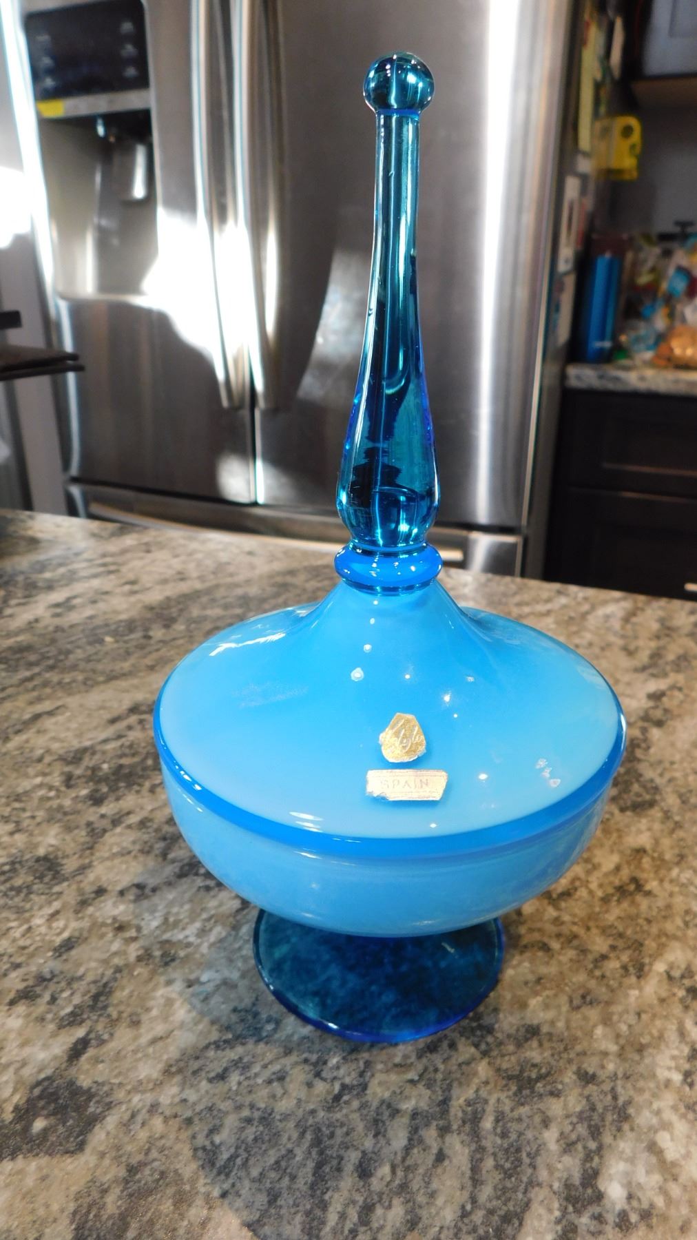 STYLO, SPAIN, BLUE AND WHITE CENTERED, CANDY DISH, TAG STILL ON