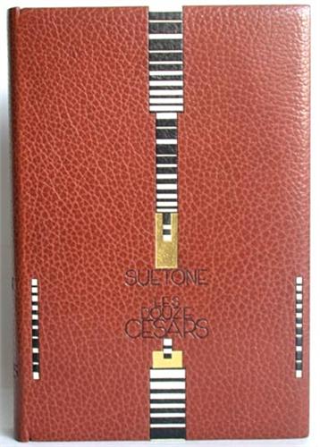 SUÉTONE.- Les douze Césars. Traduction inédite de Joseph Estève. Préface de Louis Barthou. Paris, F.-L. Schmied, ( 1928). In-4°. Relié par Rose Adler et A. Jeanne doreur, en 1931 : plein maroquin brun tabac, plats ornés de fines bandes verticales de maroq. noir et blanc alternés, petits rectangles dorés frappés en creux cernant le titre tiré à froid, dos lisse, doublures bord à bord de maroq. blanc avec petit rappel du décor des plats, gardes volantes de reps moiré noir, doubles gardes de papier artisanal dans les bruns et ors, tranches dorées, couv. et dos cons. Sous chemise en demi-maroq. brun tabac, sous étui.