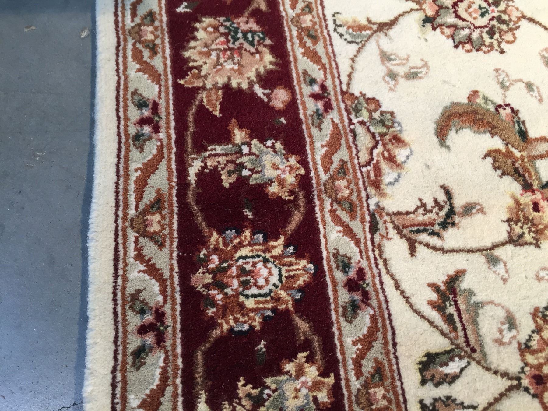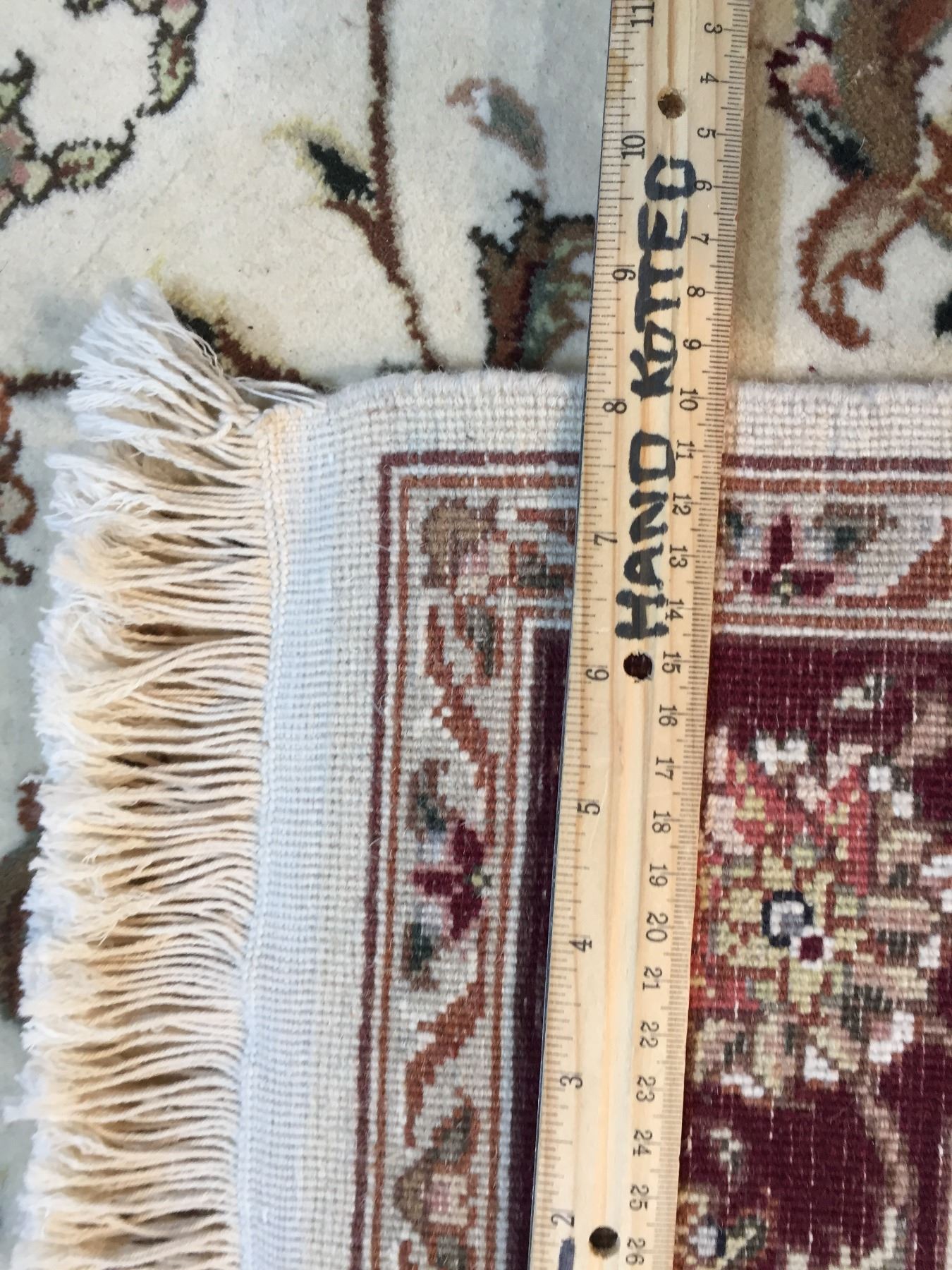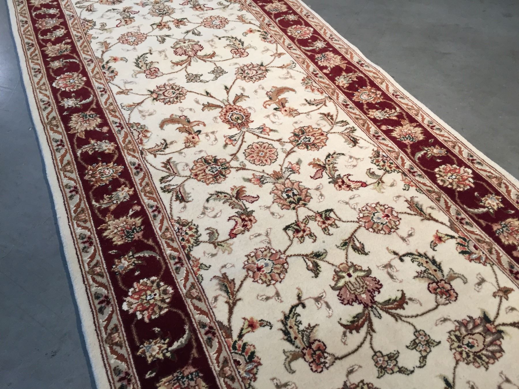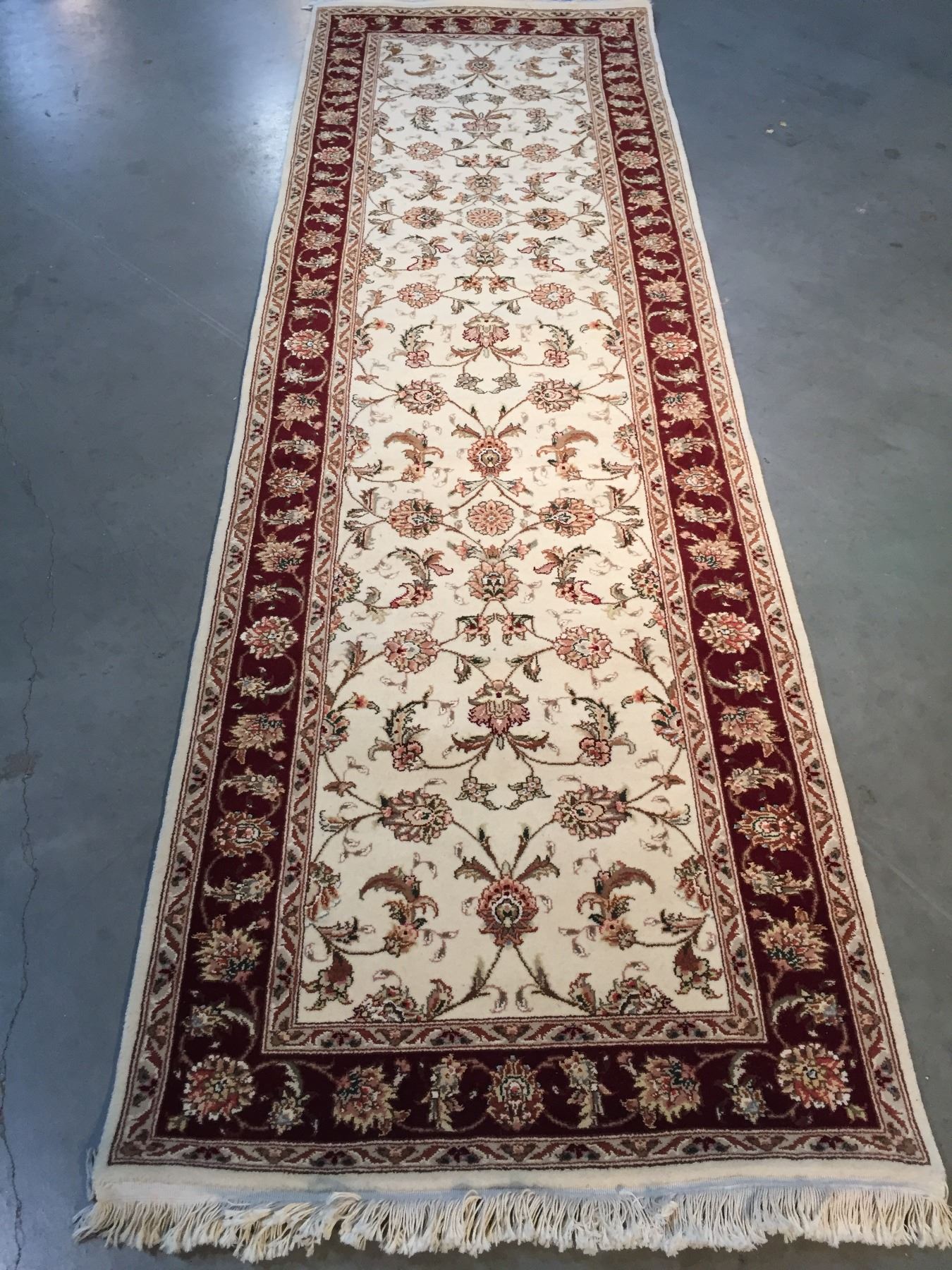 2.6x10 Luxurious Silk and wool pile Sino Persian Tabriz stunning design runner in Ivory, Burgundy and multi accent colors , Natural wool with silk highlighted pile Hand Knotted in China