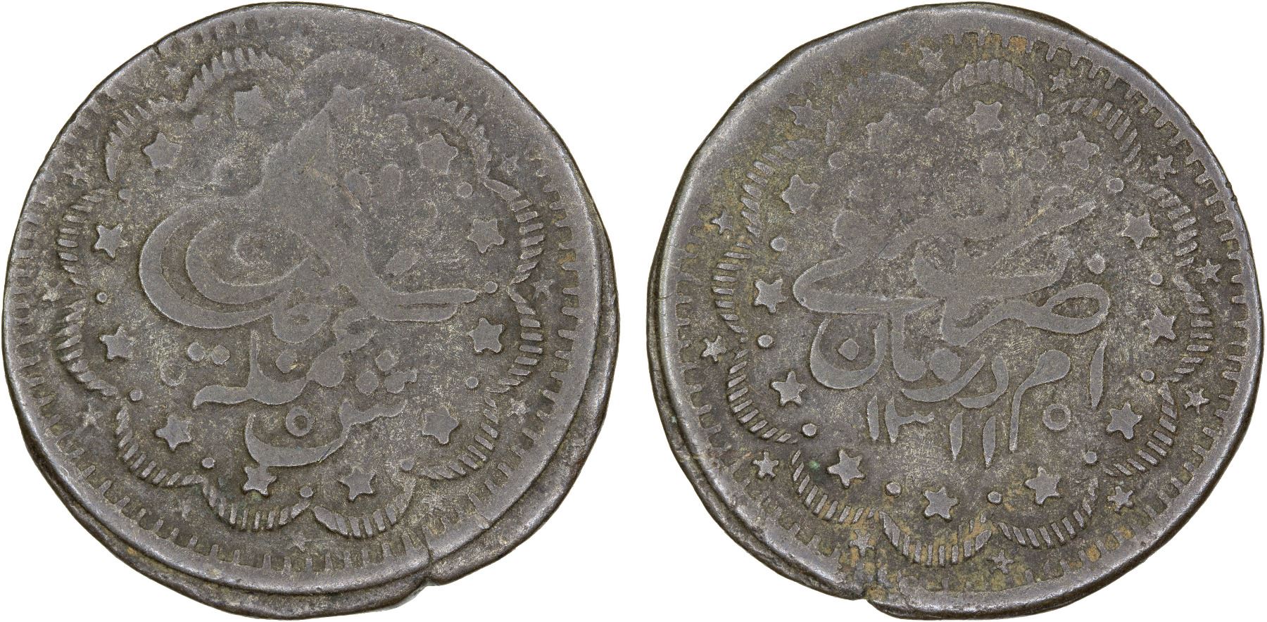 SUDAN: Abdullah ibn Mohammed, 1885-1898, BI 5 piastres, AH1311, KM-19, rare one-year type, VG to Fine, RR, ex Wolfgang Schuster Collection.