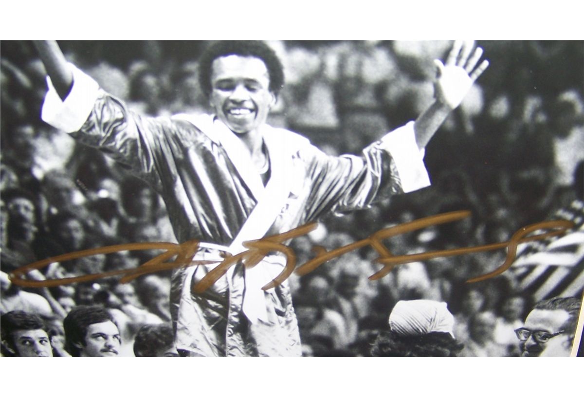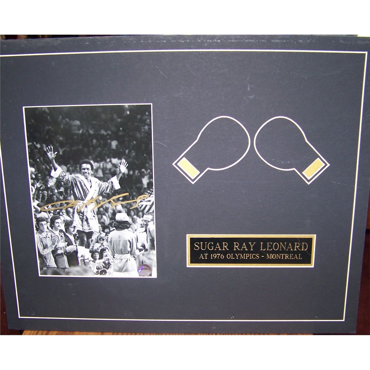 SUGAR RAY LEONARD SIGNED OLYMPIC ERA PICTURE, matted not framed