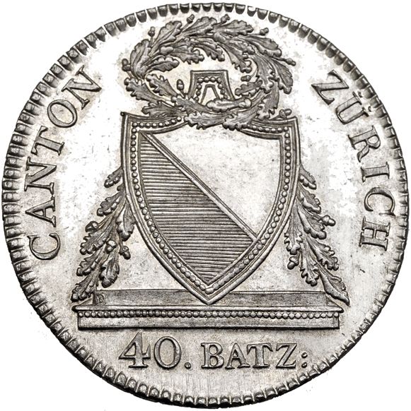SUIZA. 40 batzen. 1813B. Zürich. KM-190. SC.