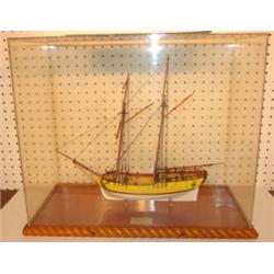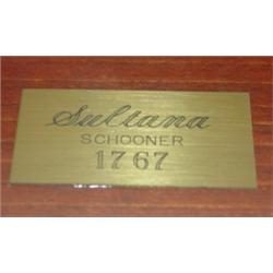 SULTANA SHIP MODEL IN CASE. Brass plate reads "Sultana-Schooner-1767". Is accompanied with magazine article.