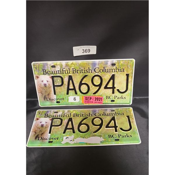 PAIR BRITISH COLUMBIA BC PARKS "SPIRIT BEAR" LICENSE PLATES369 - PAIR BRITISH COLUMBIA BC PARKS "SPIRIT BEAR" LICENSE PLATES