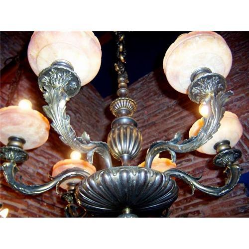 SUMPTUOUS FRENCH ANTIQUE CHANDELIER , ORIGINAL PATINA VERY NICE , ORIGINAL WOOD CANDLES, REWIRED , WORK PERFECTLY TO USA TO STANDARDS BULBS, ALL SOLID BRONZE FOUNDRY OF YOUR EPOCH , LOOK YOUR EXQUISITE AND FINE RELIEF AND ORNATE VERY IMPORTANT , EXCELLENT CONDITION AS SHOW THIS PICTURES , BEAUTIFUL ANTIQUES ALABASTER WITH BEAUTIFUL COLOR, AMAZING ANTIQUE PIECE FOR EMBELLISH A BIG MANSION , LET ME KNOW IF YOU NEED MORE INFORMATION.THE SHIPPING IS THROUGH PRIVATE COURIER DHL SPECIAL SERVICE , INSURANCE , ONCE READY THE PACKAGE YOU RECEIVE IN ONLY 3 BUSINESS DAYS.