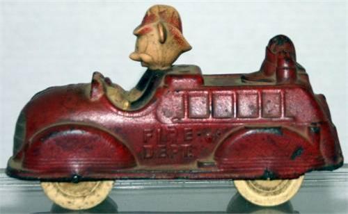 SUN RUBBER MICKEY MOUSE FIRE TRUCK. DONALD DUCK RIDES AT THE BACK.