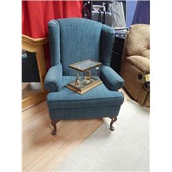 WING BACK CHAIR - GREEN WITH QUEEN ANN LEGS