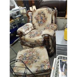 FLORAL & WOOD ARM CHAIR & OTTOMAN