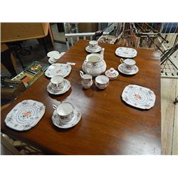 ROYAL ALBERT TEA SET - 15 PC - PETTI POINT - LID TO TEAPOT HAS BEEN REPAIRED