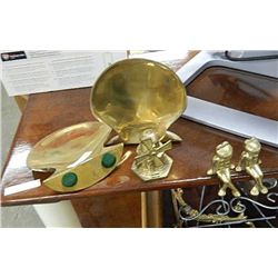 BRASS LEDGE FROGS (2). WINDMILL AND 2 BRASS SHELLS - 5 PC TOTAL