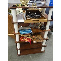 SHELF LOT - WHALES ON DRIFT WOOD, PAINTING ON MARBLE & CATS