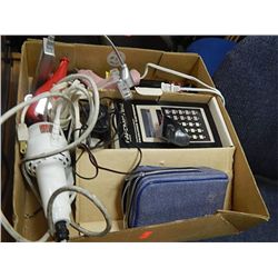 BOX OF RETRO CALCULATORS, RADIO & OTHER STUFF