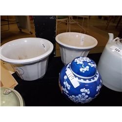 ORIENTAL PLANT POTS (2) & GINGER JAR -= 3 PC TOTAL