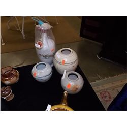 CLAY POTS - 3 & ORIENTAL JUG IN BAG = 4 PC TOTAL