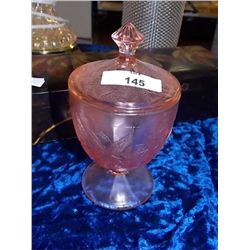 ART GLASS CANDY DISH WITH LID - PINK