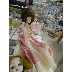 VINTAGE COLLECTORS PORCELEIN DOLL - IN VINTAGE PINK DRESS