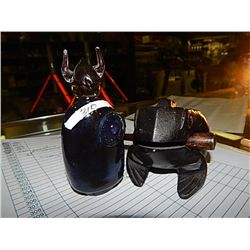 COBALT BLUE VIKING FIGURE & WOOD TOAD NOISE MAKER