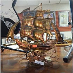 COPPER SHIP WITH MUSIC BOX - SHIP MOVES UP AND DOWN WHEN PLAYING - MUSIC BOX NEEDS HELP