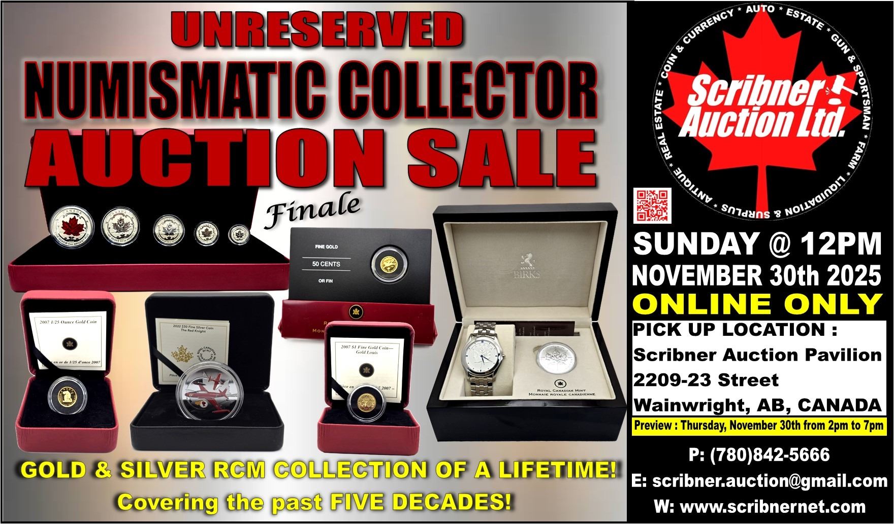 3. If you wish to pick up your items and pay with either Debit or Cash, this must be approved/arranged by Scribner Auction Ltd.
