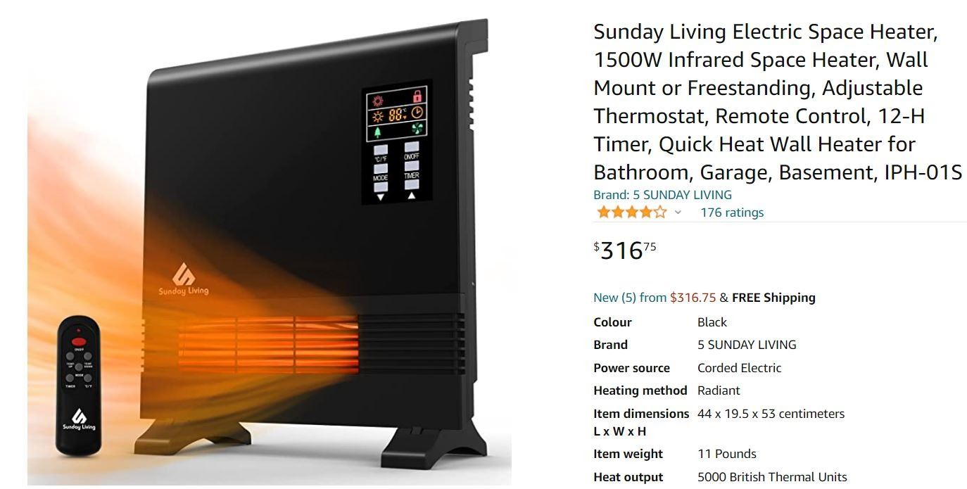 SUNDAY LIVING INFRARED HEATER MODEL IPH-01S
