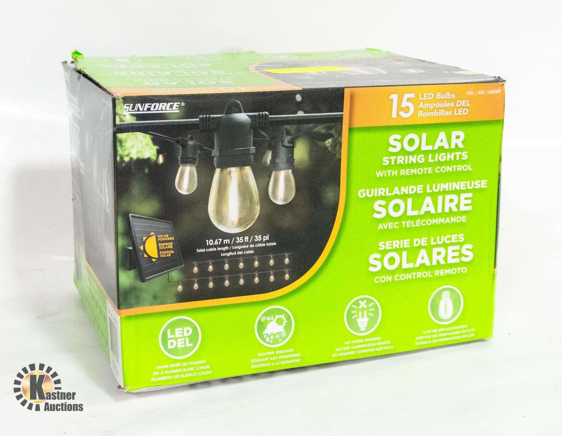 EQUIPPED WITH LED BULBS, DUSK TO DAWN ACTIVATION, AND A LONG-LASTING AMORPHOUS SOLAR PANEL, THESE STRING LIGHTS ARE IDEAL FOR DECKS, PATIOS, BACKYARDS, PERGOLAS, GAZEBOS, AND MUCH MORE **ALL ITEMS MUST BE REMOVED BY 5PM SATURDAY, AUGUST 19TH 2023. ALL REMAINING ITEMS WILL BE SUBJECT TO A $6.00 PER DAY STORAGE CHARGE. ANY ITEMS REMAINING AFTER MONDAY, SEPTEMBER 4TH, 2023 WILL BE CONSIDERED FORFEITED. NO REFUNDS WILL BE ISSUED FOR FORFEITED ITEMS. TO SCHEDULE A PICK UP APPOINTMENT CLICK HERE