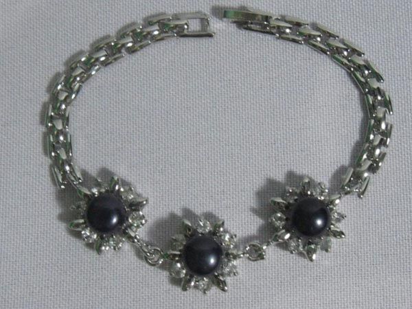 SUNNY BLACK PEARL AND CZ BRACELET;AUTHENTIC PHILIPPINE **|**|** SUNNY BLACK PEARL AND CZ BRACELET;AUTHENTIC PHILIPPINE BRACELET;METAL-SILVER;SIZE-8INCH ; MSRP: $75