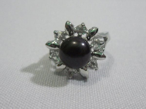 SUNNY BLACK PEARL AND CZ RING; AUTHENTIC PHILIPPINE PEA **|**|** SUNNY BLACK PEARL AND CZ RING; AUTHENTIC PHILIPPINE PEARL;METAL-SILVER;SIZE-7 ; MSRP: $75