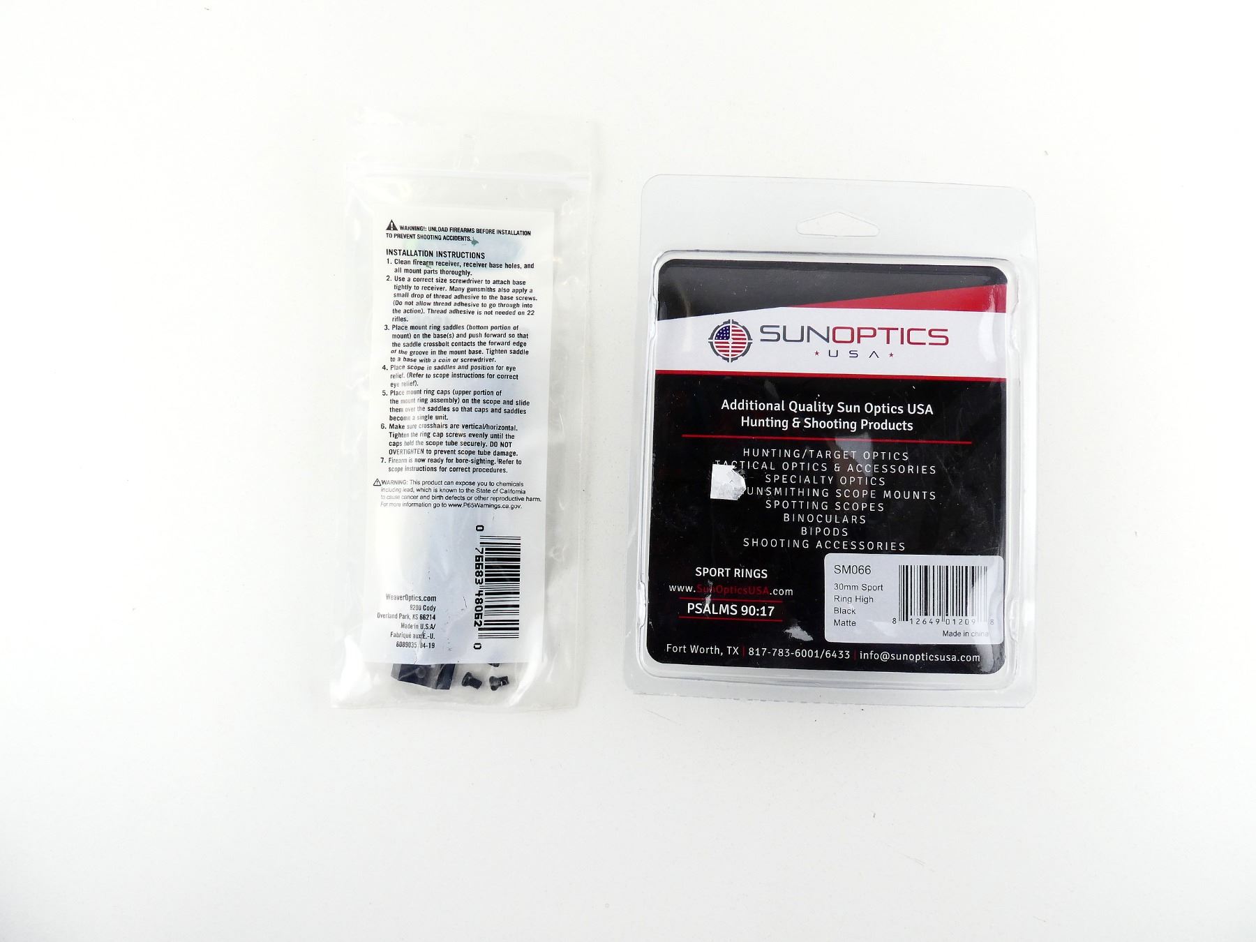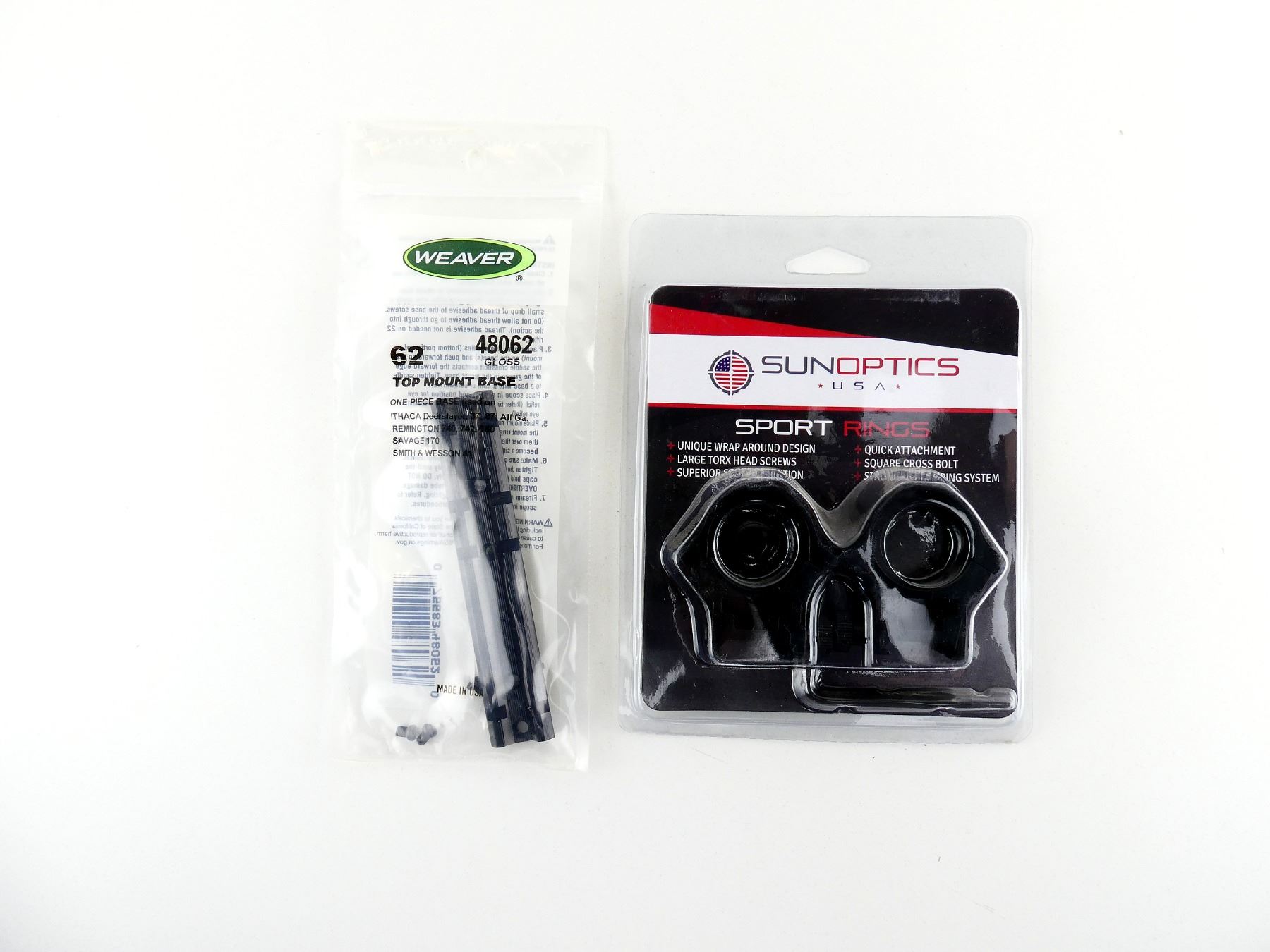 SUNOPTICS SPORT 30MM SCOPE RINGS AND WEAVER SCOPE RAIL LOT