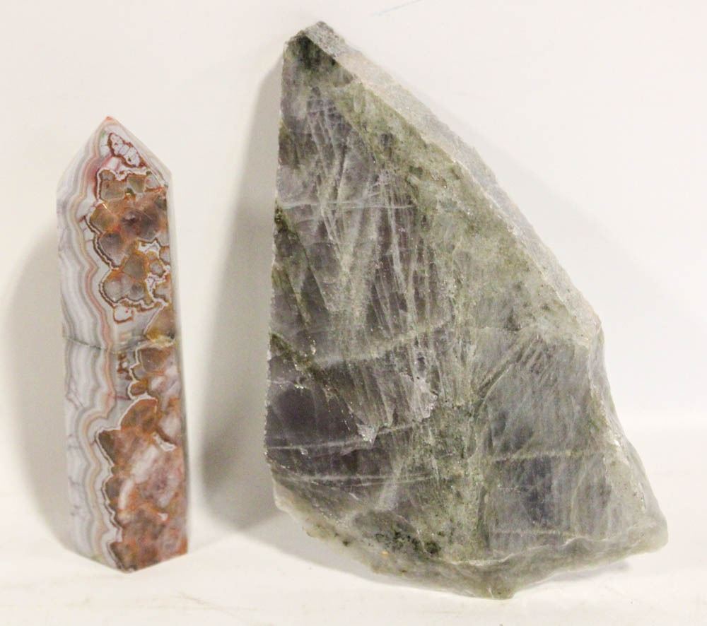 SUNSET LABRADORITE SLAB & AMETHYST TOWER