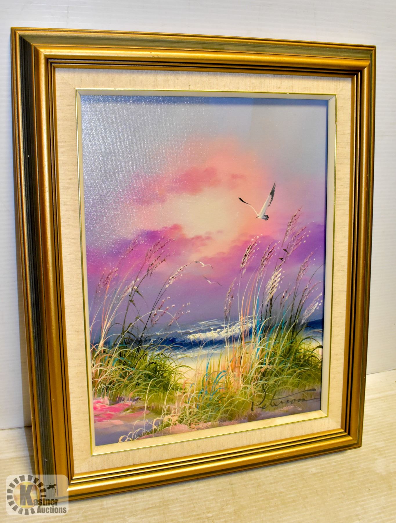 SUNSET ON THE WATER PAINTING SIGNED BY PETERSON