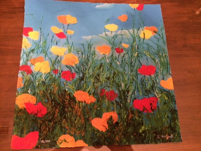 "SUNSHINE POPPY" ORIGINAL HAND SIGNED GICLEE BY DAVID NAJAR W/COA. 17 3/4" X 17 7/8". LIMITED EDITION OF 350