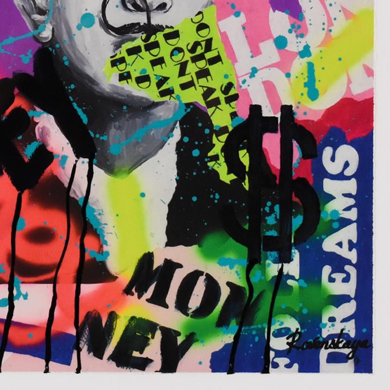 SUP By Rovenskaya Original. "SUP" is a one-of-a-kind mixed media on deckle edge paper by Nastya Rovenskaya, Hand signed by the artist. This piece comes floating in a custom frame. Includes Letter of Authenticity. Measures approx. 31.5" x 27.5" (framed), 24" x 20" (image).