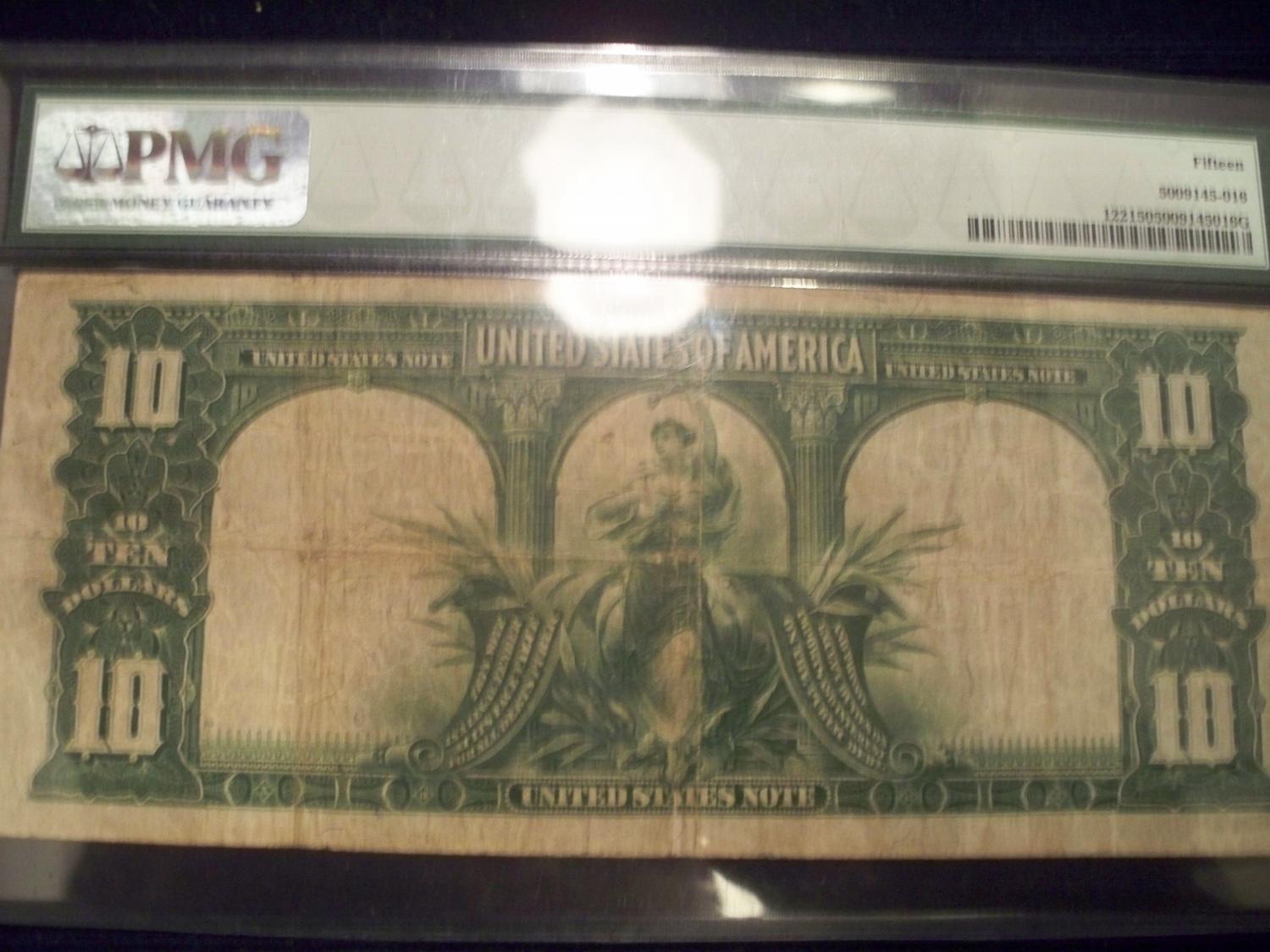 SUPER RARE- $10 "Bison" Note, Graded PMG V Fine 15