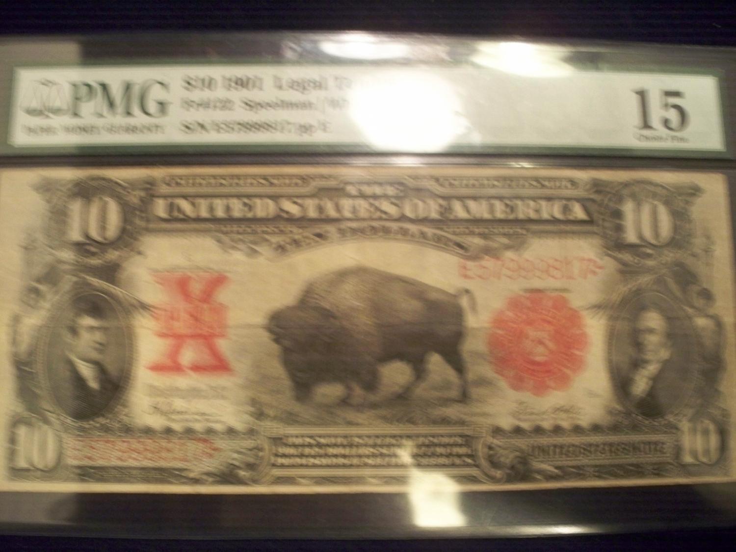 SUPER RARE- $10 "Bison" Note, Graded PMG V Fine 15