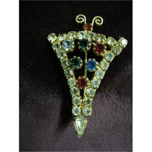SUPERB VINTAGE FIGURAL RHINESTONE BROOCH, MADE FROM BEAUTIFUL COLORFUL RHINESTONES.IT IS QUITE LOVELY BROOCH DISPLAYS INTRICATE DETAIL AND QUALITY OF STONES AND WORKMANSHIP - as per images - Measures about 1 3/4 inch and over 1 inch wide, Excellent condition and It is magnificent!, US Buyer to pay 7.00 for shipping plus insurance.THANKS.