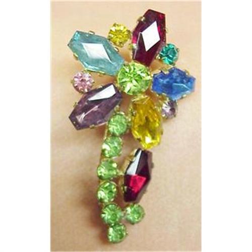 BEAUTIFUL VINTAGE BROOCH,IT COMES IN A VARIETY OF GORGEOUS COLORS, STONES, DEPICTING BEAUTIFUL FLOWER,as per picture, EACH STONE IS SECURED WITH THE PRONGS,CLASP WORKS VERY WELL, MEASURES ABOUT 2" LONG. - US BUYER TO PAY 7.00 FOR SHIPPING PLUS INSURANCE.THANKS.