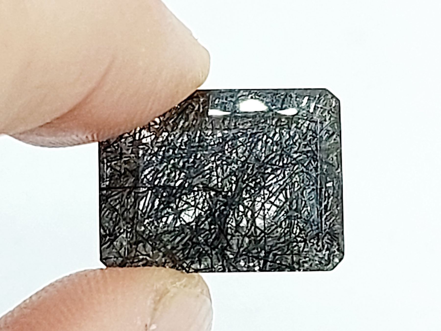 19.63 ct. 20 x 15 mm. Colout: Black Tourmaline Rutiles, Shape: Octagon Cut , Origin: Brazil Untreated