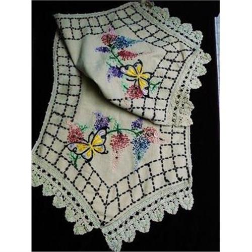 </font></strong>EARLY 1900'S TABLE OR DRSSER OR BUFFET RUNNER, HAND MADE, DEPICTING BEAUTIFUL SILK THREAD EMBROIDERY AND CROCHETED LACE BORDER,MOST PLEASING COLORS AND DESIGNS, as per our images - Excellent condition free from spots or holes, Measuring about 42 inch long x 16 1/4 inch wide, US Buyer to pay 5.00 for shipping plus insurance.THANKS.</font>