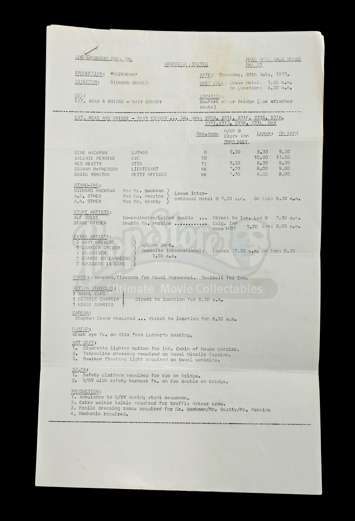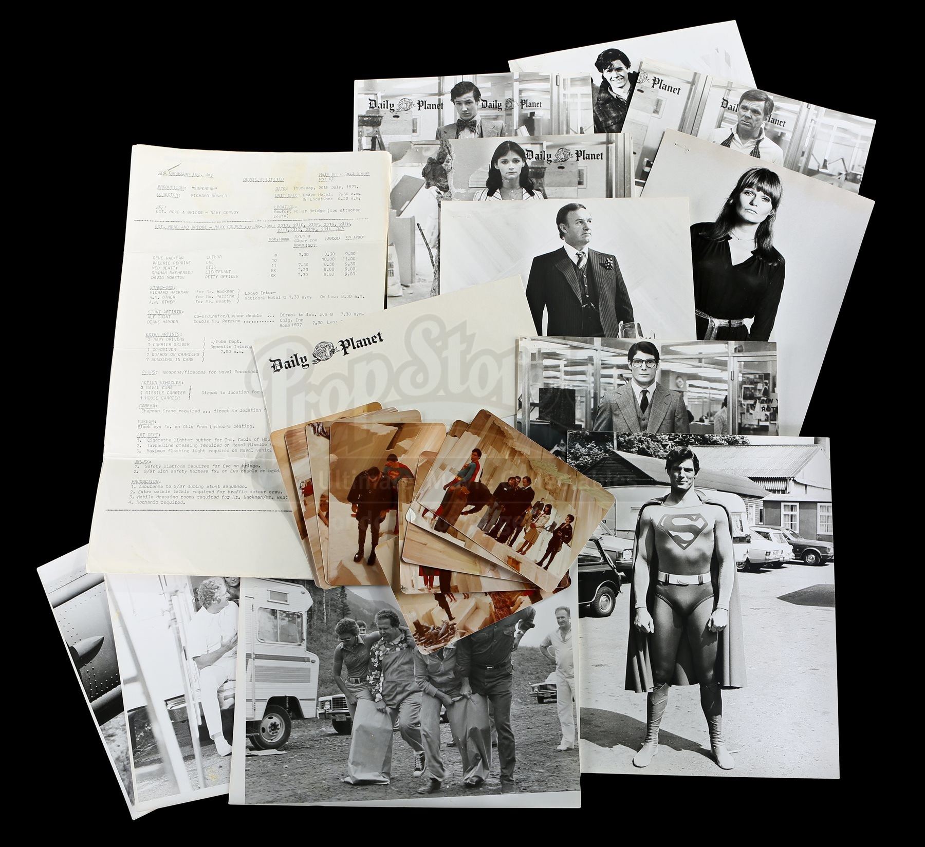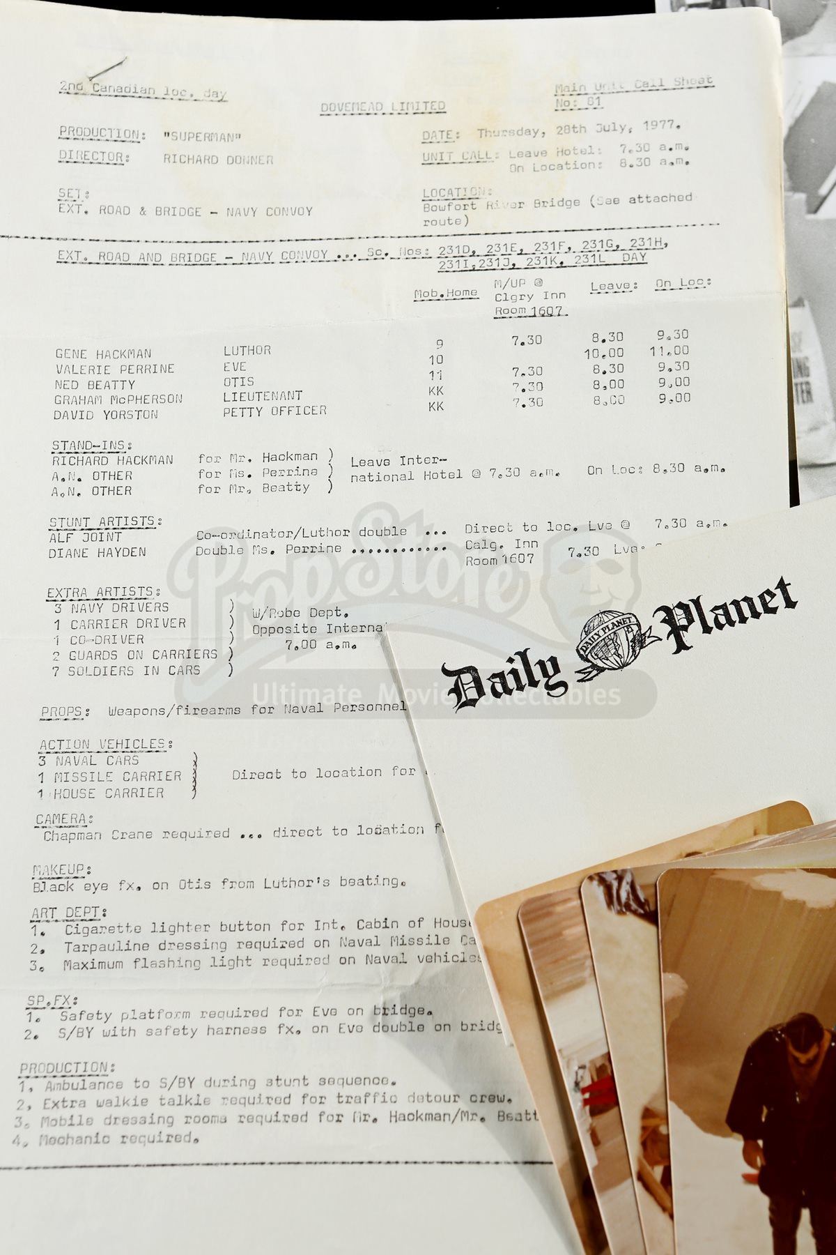 SUPERMAN (1978) - Daily Planet Envelope, Production Call Sheet, and Behind the Scenes Photographs