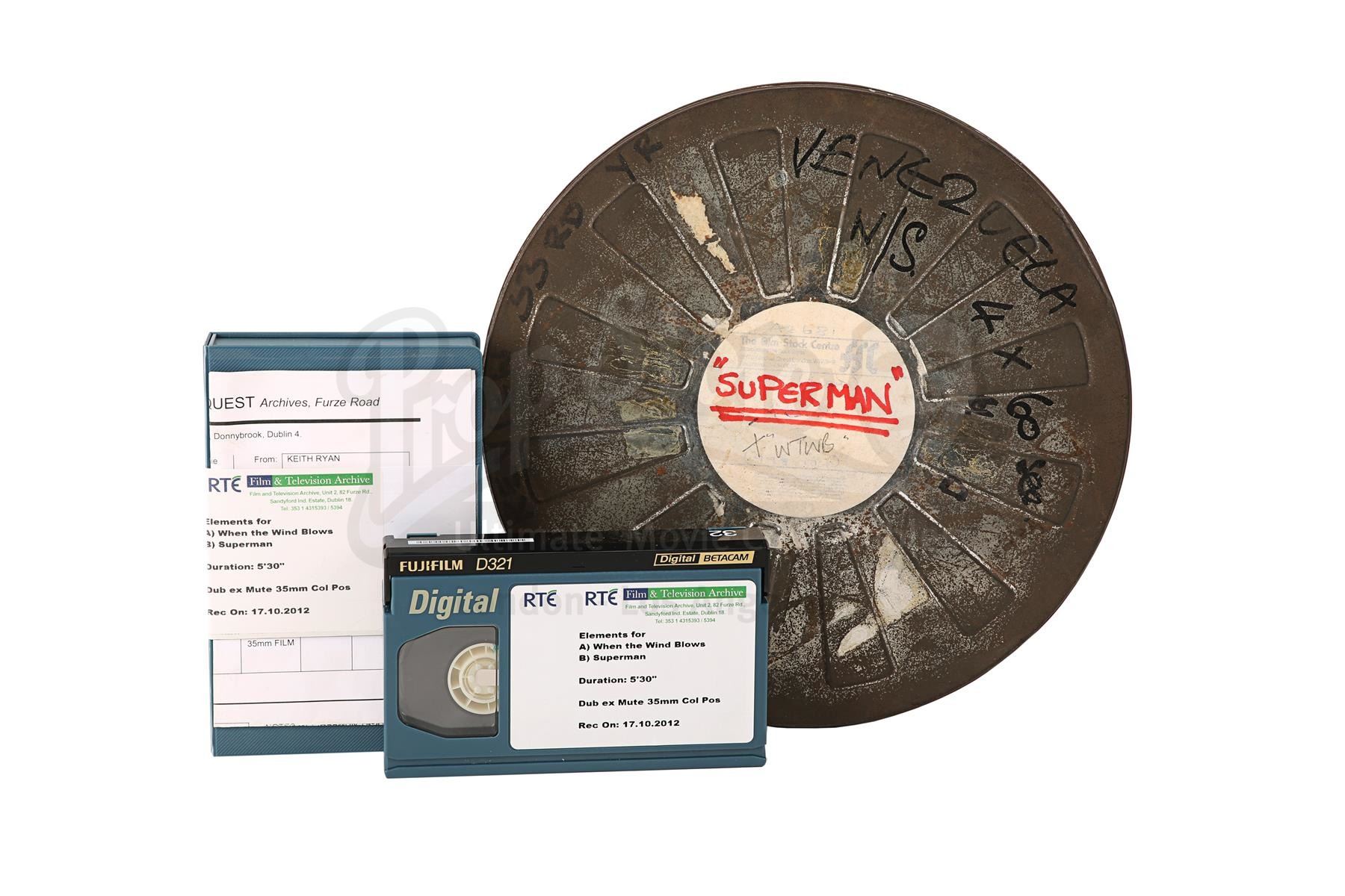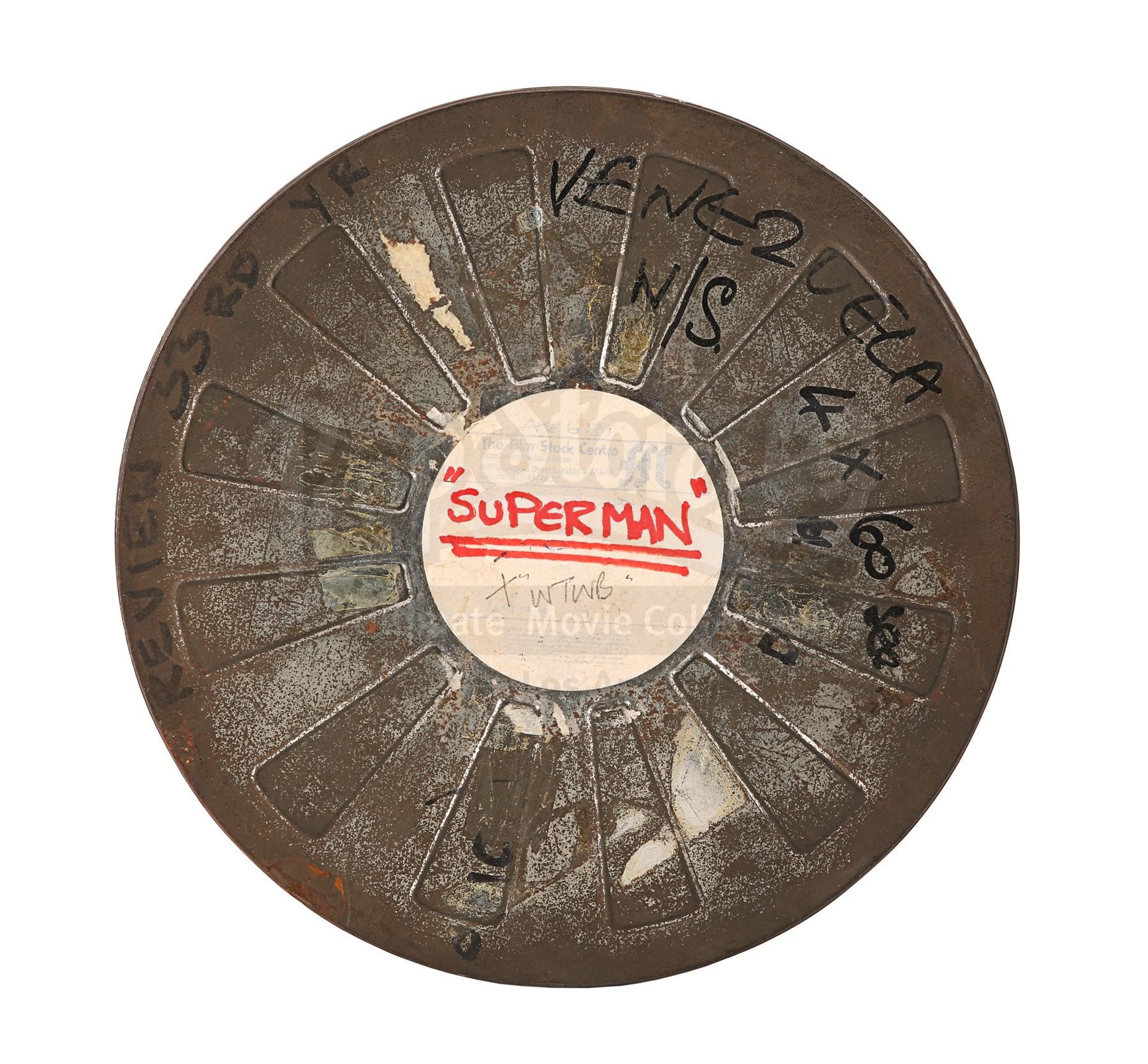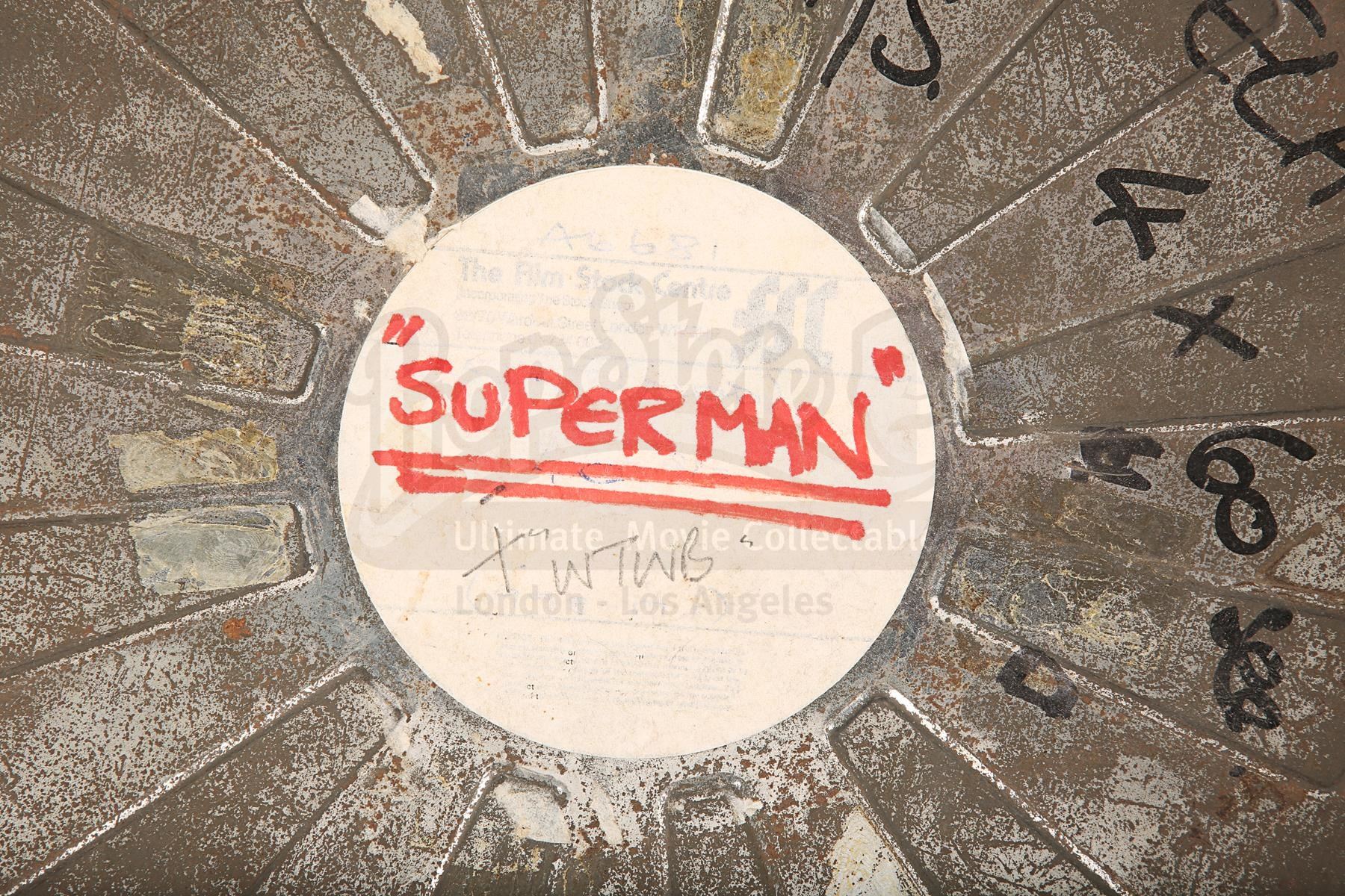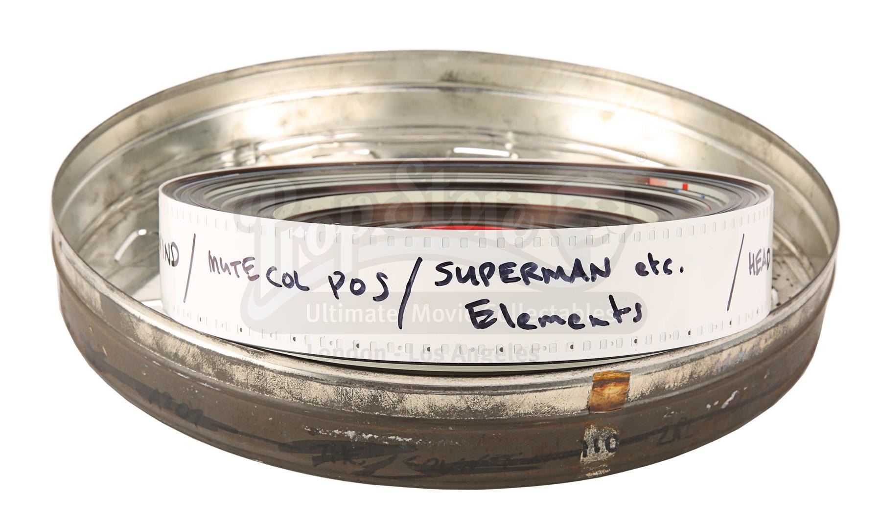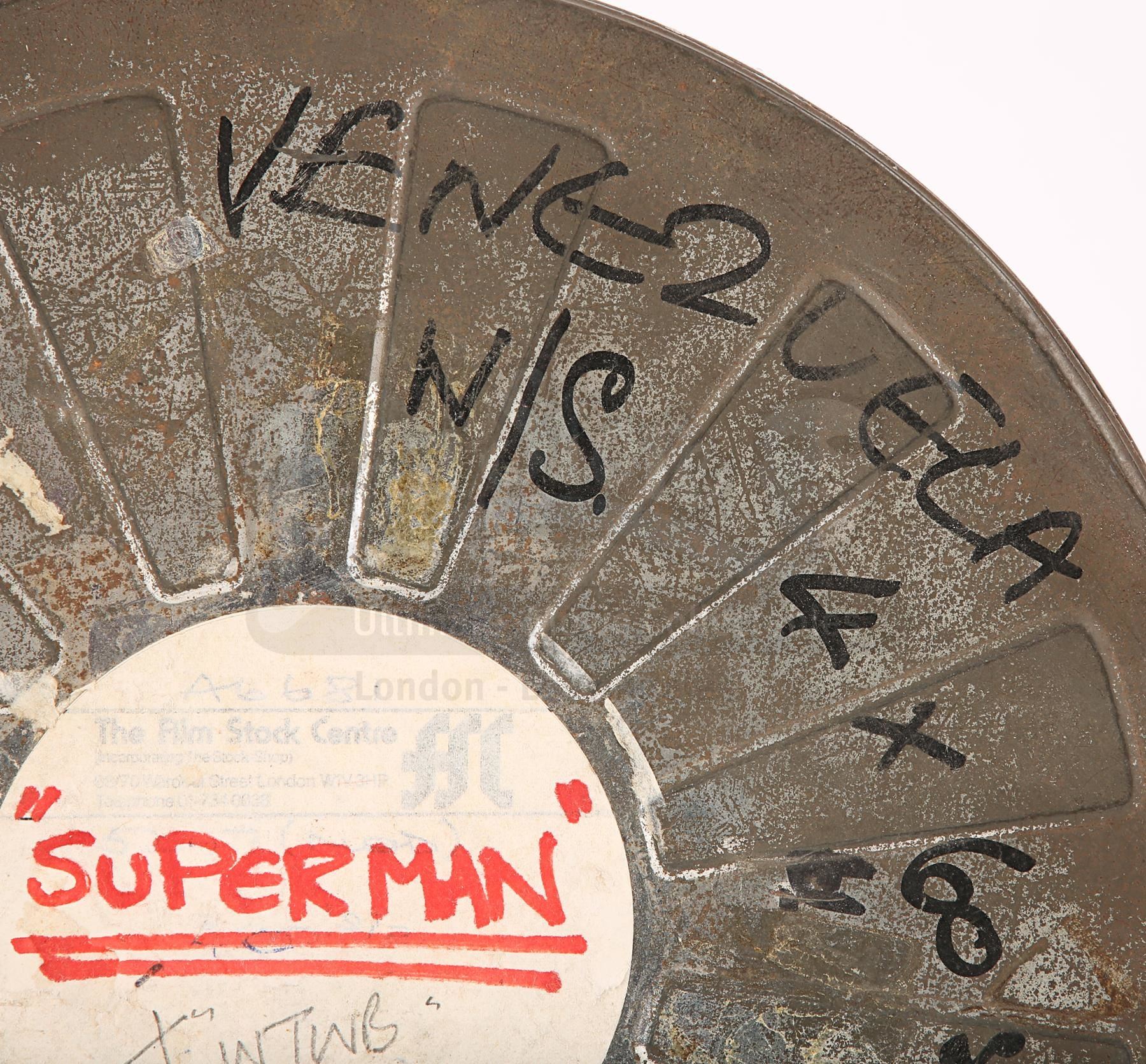 A film reel, Betamax tape and CD of EFX test footage from Richard Donner's superhero movie Superman.The film reel is stored in its original case and contains optical effects test footage. The footage has been transferred onto the tape and CD, and features a repeated take of a confrontation between Superman (Christopher Reeve) and Lex Luthor (Gene Hackman), as well as test shots for optical effects such as the young Kal-El's starship flying through space, and eventually crash landing on Earth.